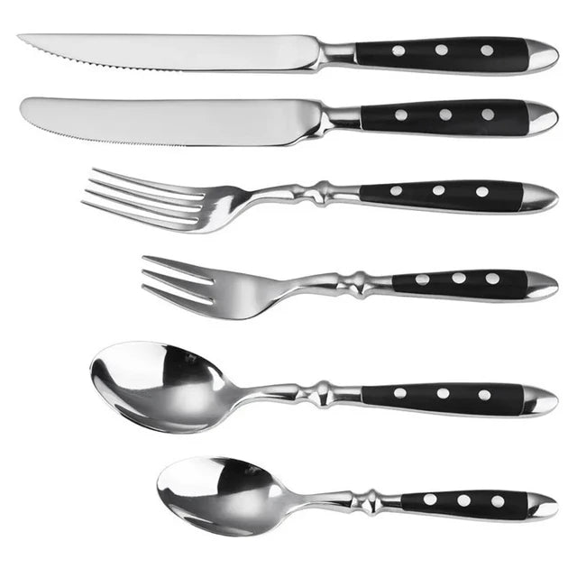 The set includes dinner forks, steak knives, spoons, and teaspoons — carefully balanced for a comfortable grip and effortless handling. The refined design adds a timeless charm to any table setting, making it perfect for casual family meals, dinner parties, or formal occasions.