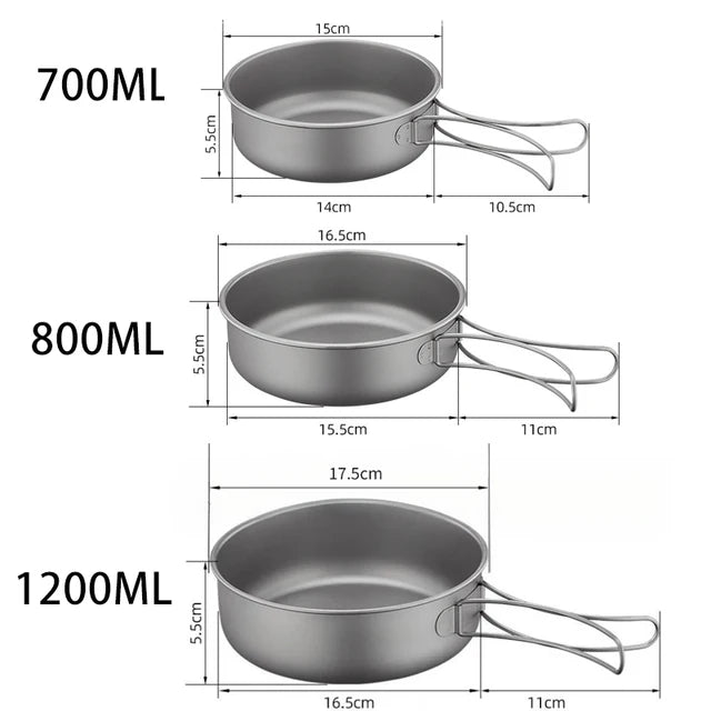 Take your outdoor cooking to the next level with the Titanium Trail Set — a complete cookware solution designed for lightweight travel and maximum durability. Made from 100% pure titanium, each pot and pan is exceptionally strong, resistant to high temperatures, and free from rust or unwanted metallic taste. The foldable handles make storage simple, allowing the entire set to nest neatly inside your backpack without taking up extra space.